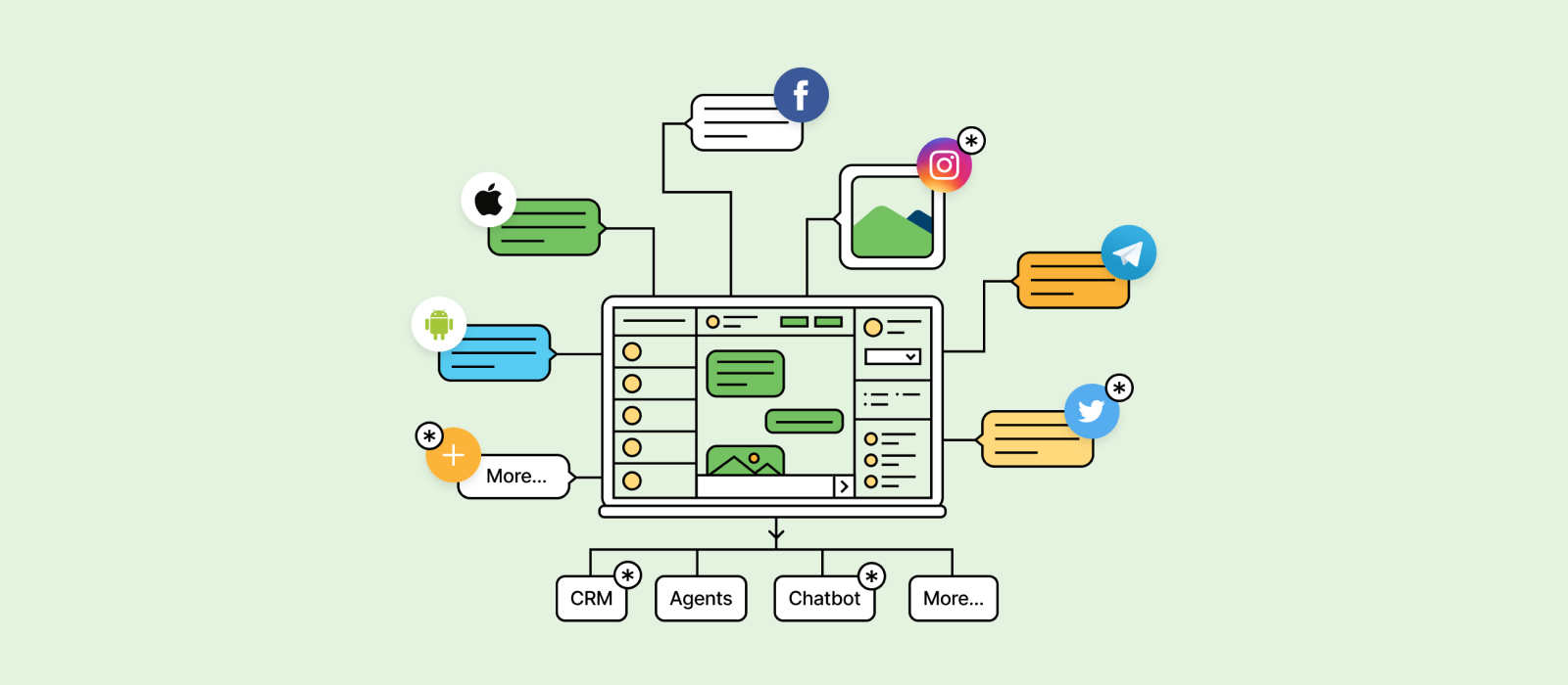 With different channels of chat applications used by customers, a multichannel chat platform is a necessary need for businesses, especially in managing customer service. Multichannel chat is a service to connect business owners with multiple chat channels and managing all these from a single dashboard. The use of a single dashboard will help you to streamline messages from multiple channels i.e. different chat applications – and it also helps you to respond customers in a timely manner, powered by automation, often through the integration of Conversational AI (Artificial Intelligence).